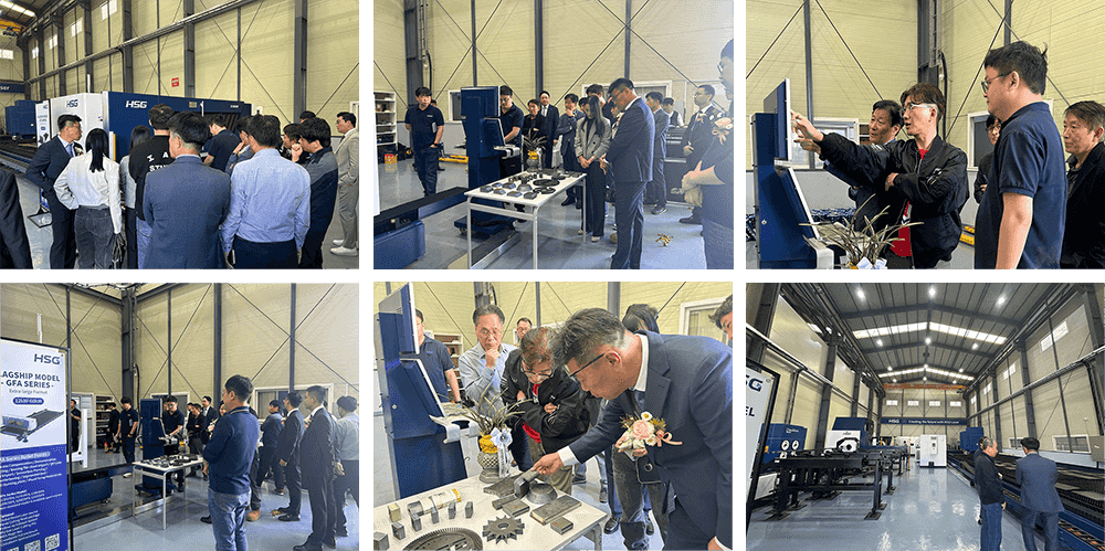 現場50多名代理商和客戶出席開業儀式,并對HSG韓國展廳進行參觀,在此過程中,嘉賓通過深入的交流,進一步了解宏山激光產品、技術和工藝,并給予高度評價,其中多位客戶現場下單簽約,訂購多臺高功率激光切割機及切管機。
